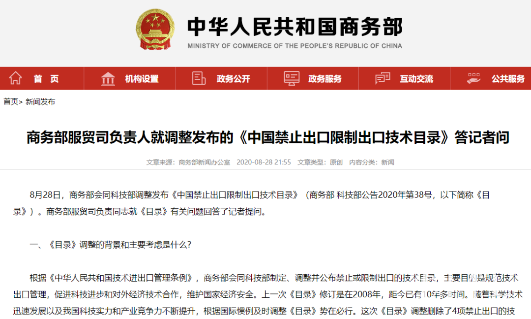 根據(jù)《中華人民共和國技術(shù)進(jìn)出口管理?xiàng)l例》,商務(wù)部會(huì)同科技部制定、調(diào)整并公布禁止或限制出口的技術(shù)目錄,主要目的是規(guī)范技術(shù)出口管理,促進(jìn)科技進(jìn)步和對(duì)外經(jīng)濟(jì)技術(shù)合作,維護(hù)國家經(jīng)濟(jì)安全。上一次《目錄》修訂是在2008年,距今已有10年多時(shí)間。隨著科學(xué)技術(shù)迅速發(fā)展以及我國科技實(shí)力和產(chǎn)業(yè)競爭力不斷提升,根據(jù)國際慣例及時(shí)調(diào)整《目錄》勢(shì)在必行。這次《目錄》調(diào)整刪除了4項(xiàng)禁止出口的技術(shù)條目,并對(duì)限制出口的技術(shù)內(nèi)容進(jìn)行了調(diào)整。
