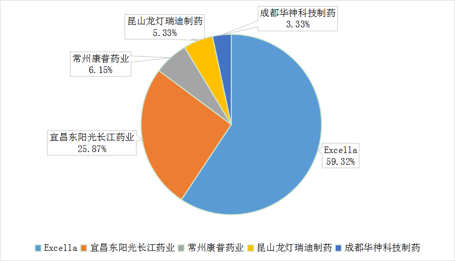 其中,德國(guó)Excella、宜昌東陽(yáng)光長(zhǎng)江藥業(yè)、常州康普藥業(yè)、昆山龍燈瑞迪制藥4家的銷售占領(lǐng)了大部分的苯溴馬隆市場(chǎng)。