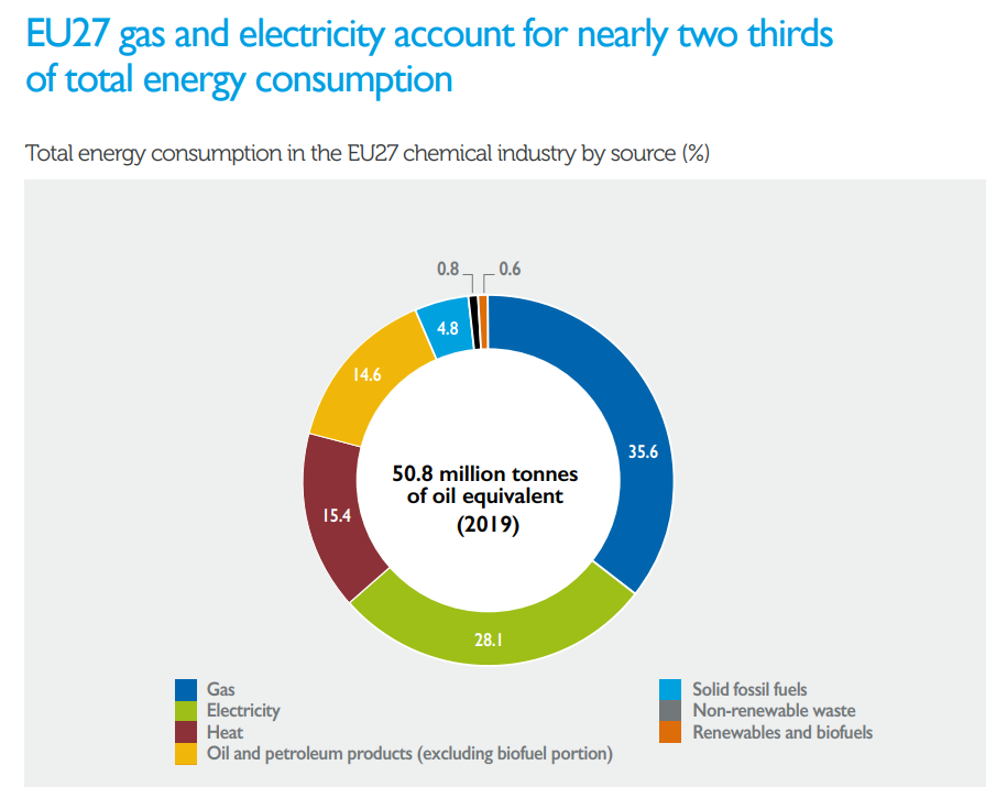 通過翻看歐洲化學(xué)理事會發(fā)布的2022年歐洲化學(xué)工業(yè)事實(shí)與數(shù)據(jù),我們可以看出,歐盟27國在化工品生產(chǎn)耗能方面,天然氣的用量占比最大,為35.6%,此外天然氣在歐洲也可作為發(fā)電、供熱的燃料,算上這部分間接使用天然氣的部分,預(yù)計(jì)天然氣用量將超過50%,這也體現(xiàn)了天然氣作為燃料來說對于歐洲化工品生產(chǎn)的重要性。
