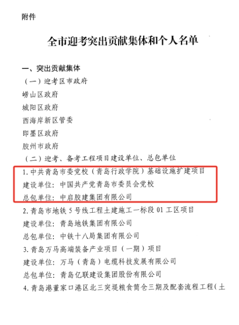 2024年8月,膠州公司的熙園府項(xiàng)目一期工程、七公司的中共青島市委黨校(青島行政學(xué)院)基礎(chǔ)設(shè)施擴(kuò)建項(xiàng)目,代表山東省圓滿完成了國務(wù)院保障農(nóng)民工工資支付工作實(shí)地考核任務(wù)。